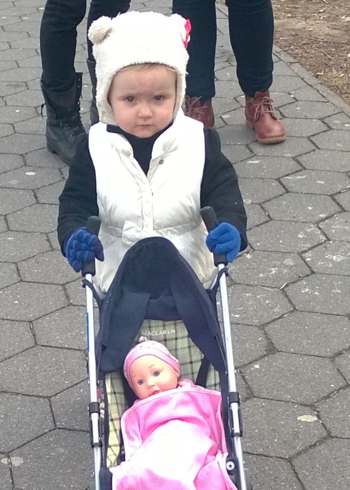 FRIDAY’ S CUTE PIC OF THE DAY on crownheightsmom goes to Magnolia, the heart-stopping, cute-as-ever little 20-month old happy tyke who along with her BABY stopped me in my tracks on Eastern Parkway in Crown Heights, Brooklyn on Thursday afternoon.