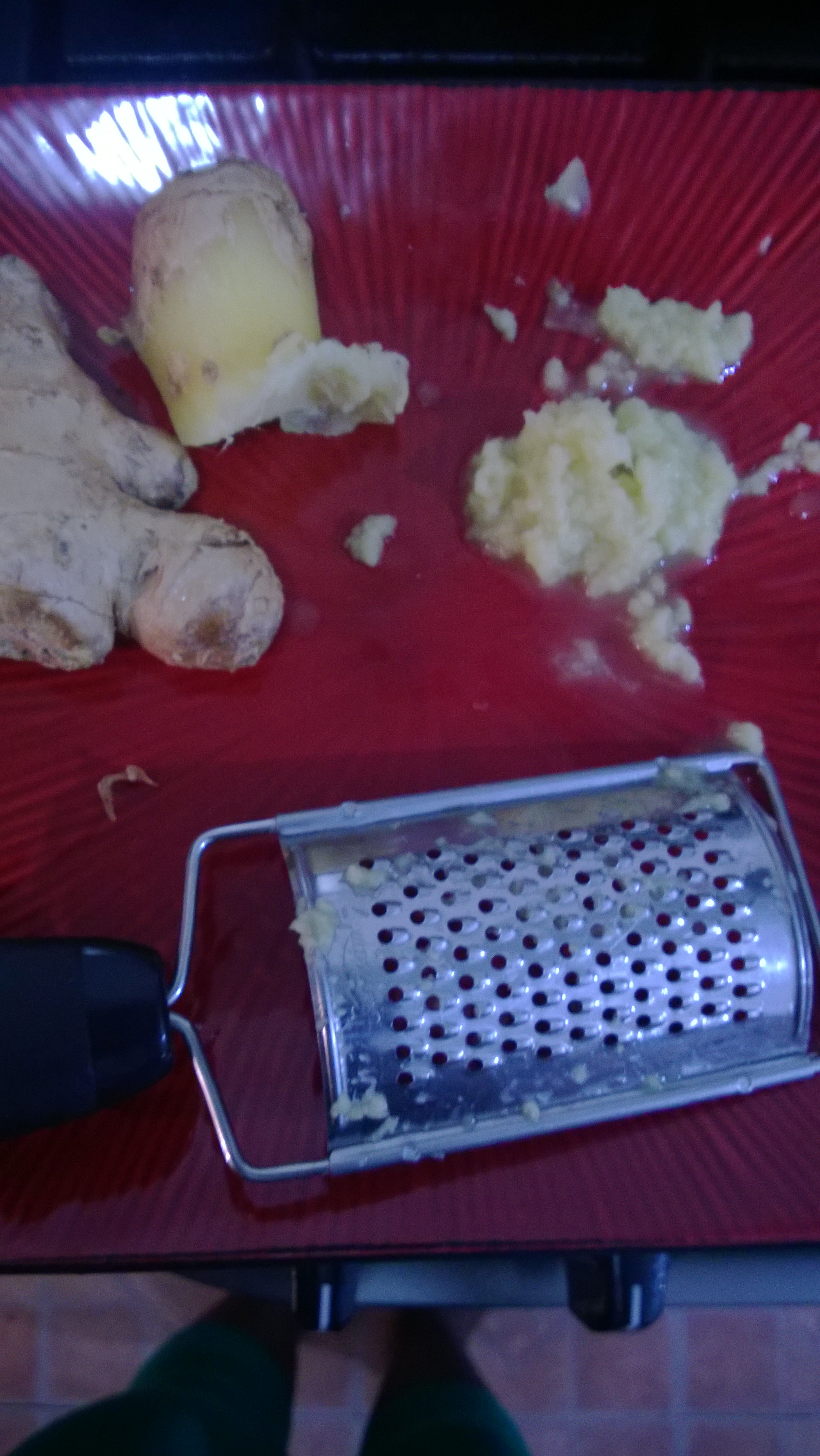 Frozen ginger-root gratedGrated ginger root in hot water