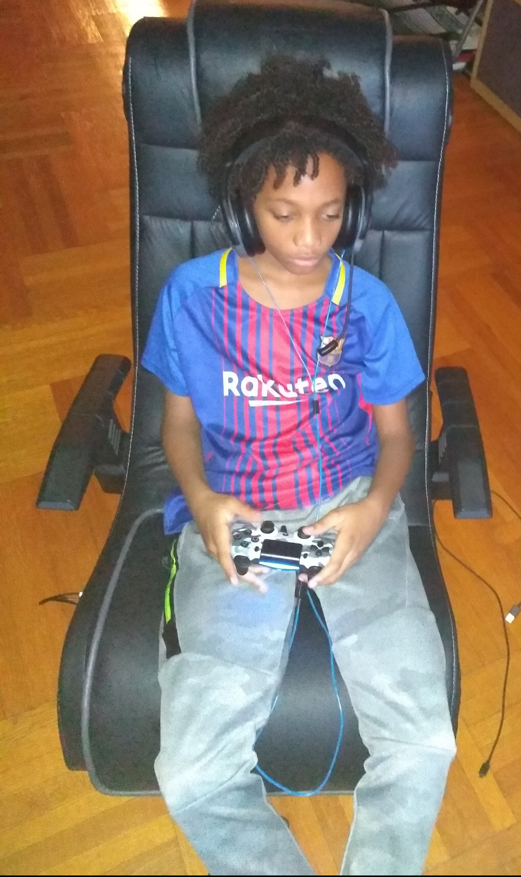 My 11-year old son is a FIFA19, Rocket League, and Fortnite player. PS4 is his console of choice but he also has an XBox. My living room is a gaming haven. It is where he partakes in Fortnite Battle Royales, letting loose with flossing dance moves, partaking in the occasional trash talk through his After Glow AG6 Wired Headset while sitting comfortably in his X Rocker Audio Gaming Chair playing with friends across the globe in Battle Royales