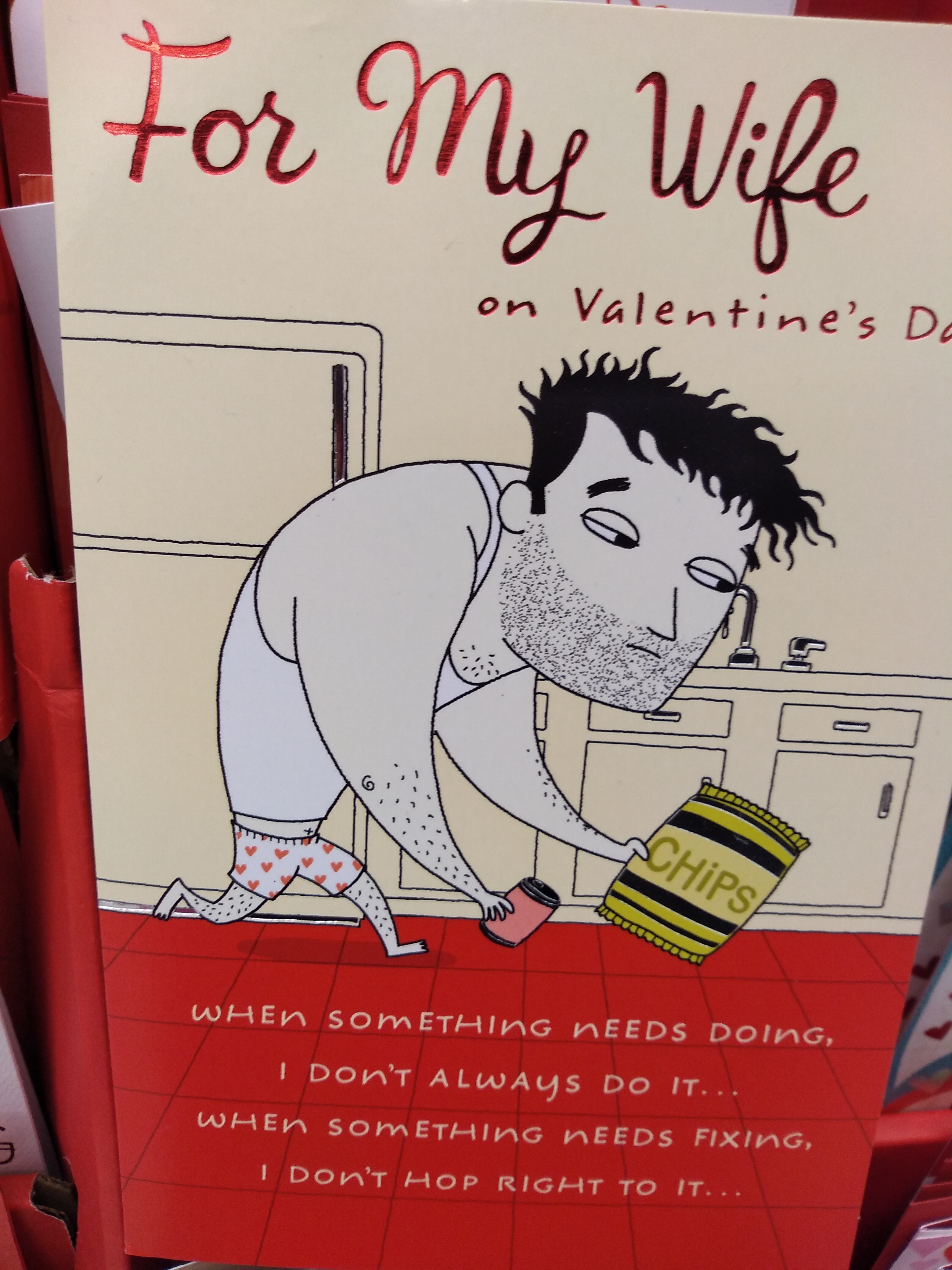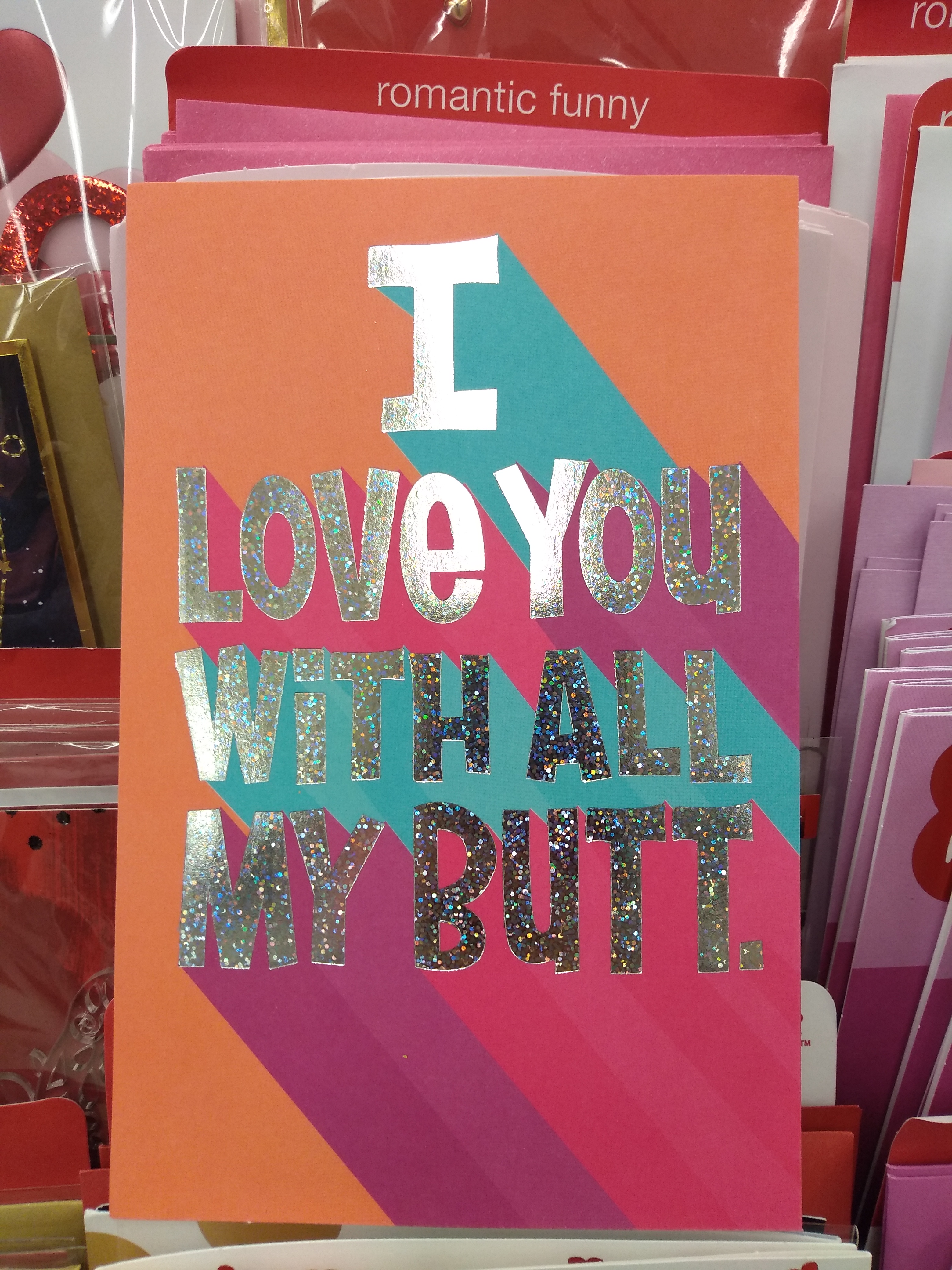 Valentine’s Day is a few days away and I am in a frenzy trying to find the perfect card for my hubs. Last year found me, at my wits end the day of frantically trying to find a card. It was literally impossible finding a good one remaining on the barren shelves. This year, I promised to hit the greeting card sections early. Cupid is on my side and I intend to be a winner. Take a look at some of the wonders I found and let me know if you can guess which one the hubby will end up with.