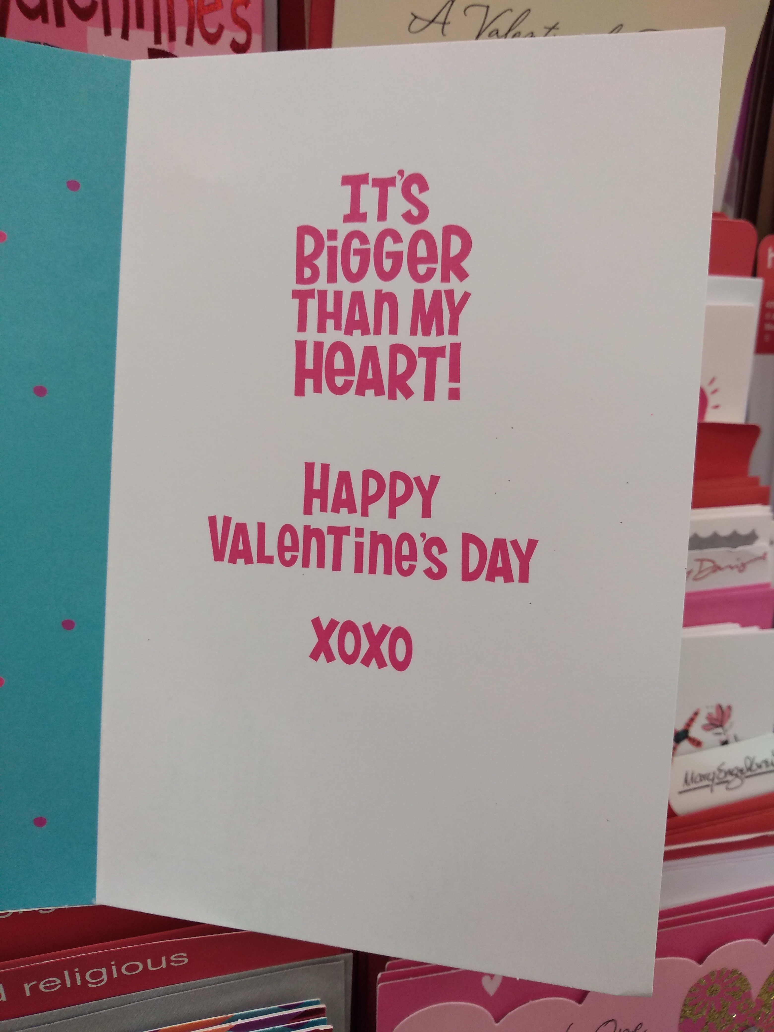 So luckily, I have about three go-to greeting card stores I frequent for all my year-round cards. From birthdays to baby showers, births, anniversaries Christmas and of course Valentine’s Day; these are my stores. In my neighborhood, is the 24-Hour Rite Aid. If the choices there are slim I make my way to Walgreens Super Store located in Manhattan’s Times Square and if the variations there aren’t great, then I head to Target located at either City Point or Atlantic Terminal in Downtown Brooklyn. Without a doubt, I am guaranteed to come out satisfied at any of these stores.