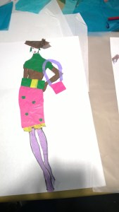 I had long forgotten or better yet, given up on my teenage dreams of becoming a fashion designer . That was until recently, attending a Target Free Sundays at the Studio Museum in Harlem with my 8- year old daughter and viewing the Speaking of People exhibition. Directly after, we headed to Workshop A for the Hands On Fashion Extravaganza workshop to make our own fashion layouts from blank traced silhouettes.